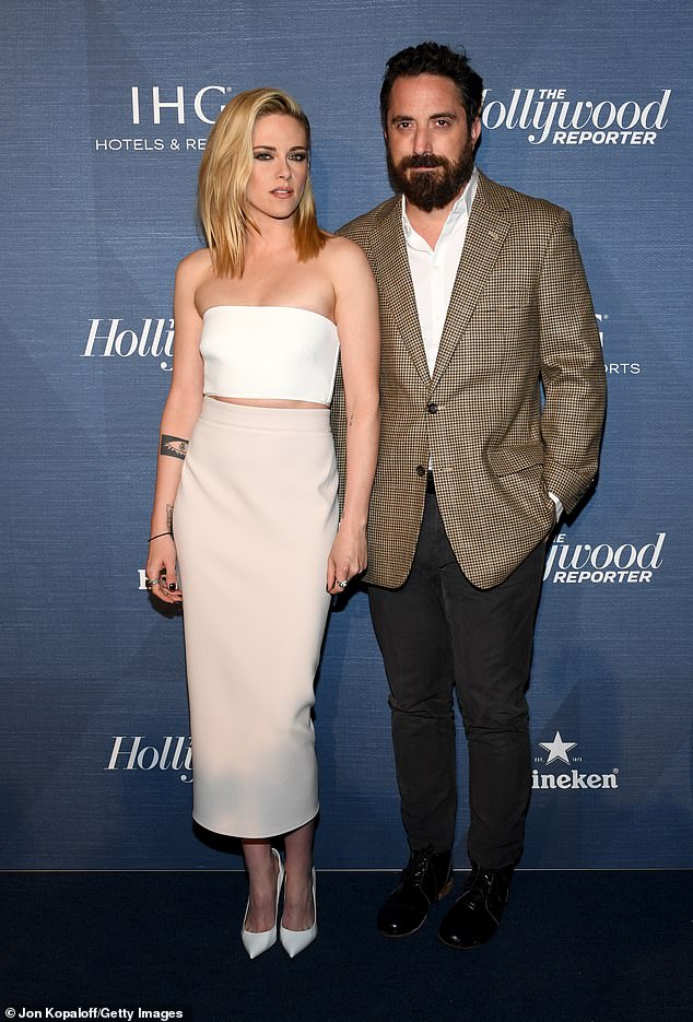 크리스틴은 영화 "스펜서" 감독 파블로 라레인과 함께 블랙 카펫에 섰다.